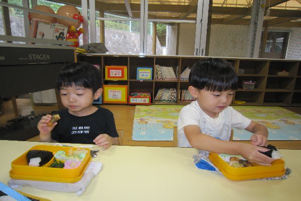 たくさん遊んだ後は給食弁当!おいしかったね!!