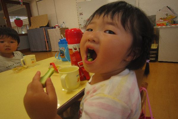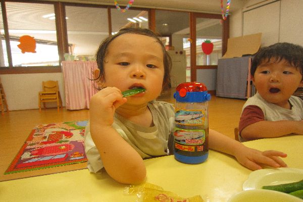 「おいしいねえ!」いちご組さん、きゅうりに夢中です!!