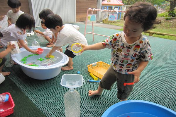その後、水遊びを楽しみました。頭や顔に水がかかってもへっちゃらです!思いっきり楽しんでいました。