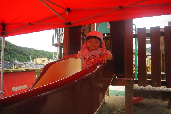 いちご組さん、外でたくさん遊びました!今まで、すべり台が怖かったお友だちも、今日はチャレンジ!初めて、すべることができたよ!