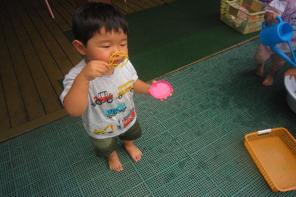 シャボン玉も楽しみました!大きいのや、小さいのもできて楽しかったです!よかったね!