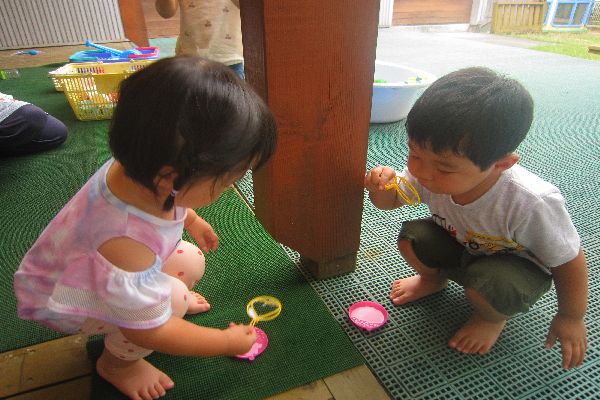 2022/07/11 いちご組さん、外遊びをしたり、シャボン玉をして遊びました!