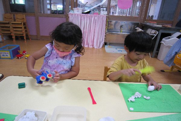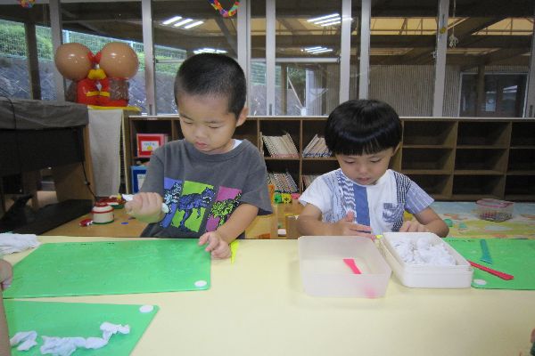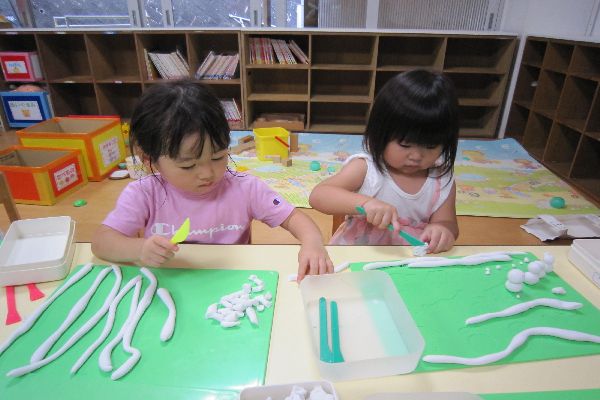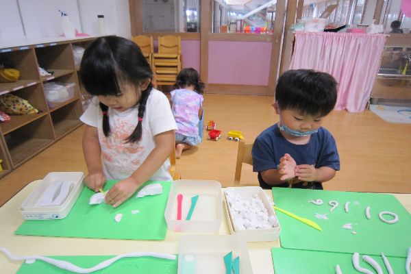 今日から2学期が始まりました。3人のお友達が仲間入りし、ひよこ組は9人になりました。粘土遊びに夢中でした。