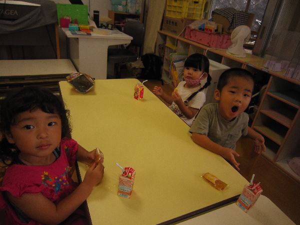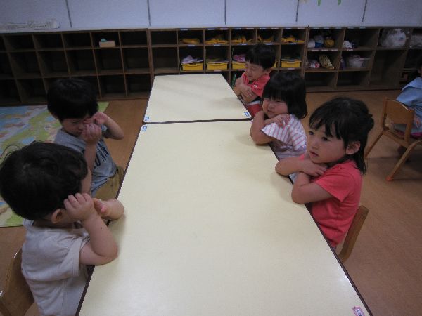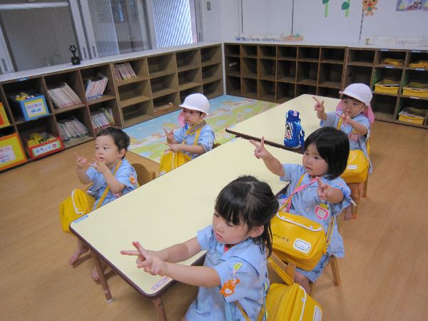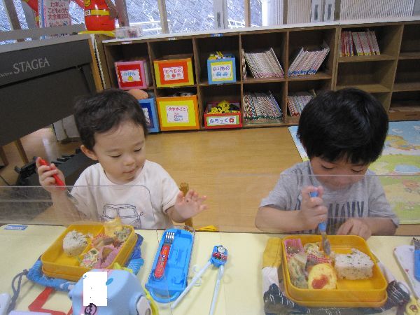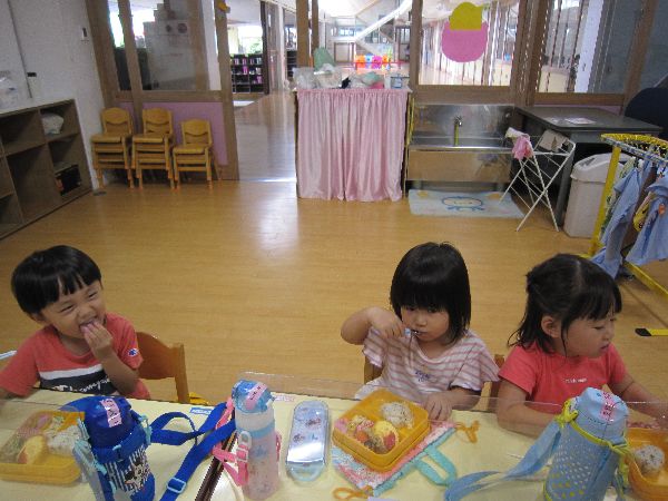 9月入園のお友達は11時降園ですが、他のお友達はお弁当が始まりました。
