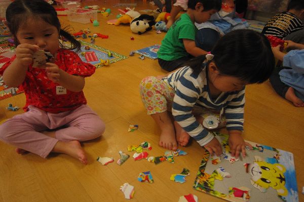 今日も、いちご組さん元気いっぱいです!いちご組さん、パズルに挑戦!!集中して取り組んでいます!
