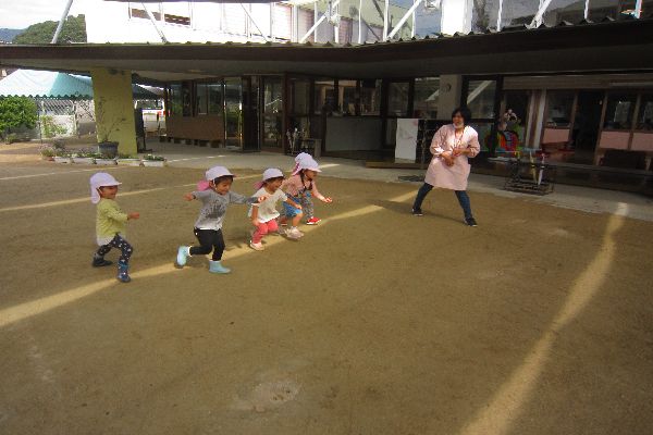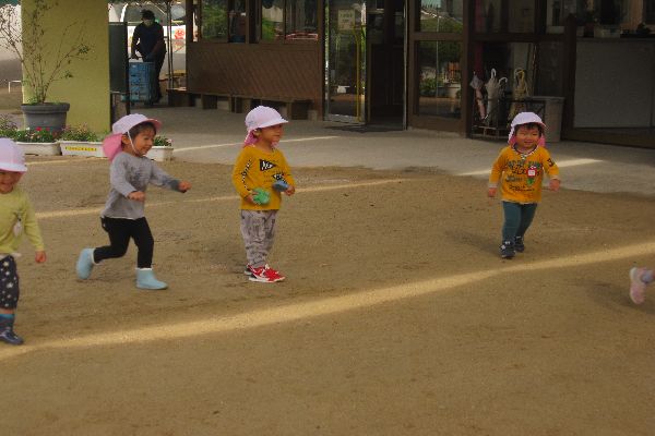 いちご組さん、今日も元気いっぱいです♪朝雨でしたが、お天気になったので、外でたくさん遊びました。かけっこもしましたよ!