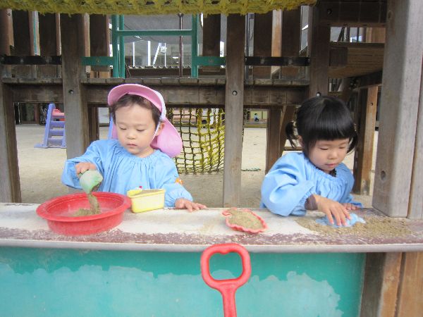 今日は火事の避難訓練をしました。ひよこ組さんは実際に避難はしませんでしたが、お部屋で逃げる時のお約束のお話を聞きました。火事になったら、「消防車を呼ぶ!」「消防車に火を消してもらう!」など、子どもたちもよく知っていました。その後、実際に消防車と救急車を見せてもらいました。「かっこいいね!」と間近で見れて、喜んでいました。消防車と一緒に写真を撮りました。