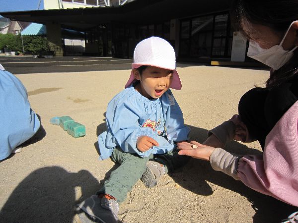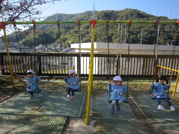 今日もお外でたくさん遊びました。ブランコ・すべり台・砂遊び、それぞれに好きな遊びを楽しみました。