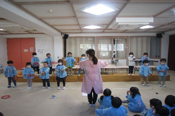 お辞儀をしたり、担任の先生の指揮をみてリズムを叩いたり、日に日に上手になってきています!☆彡