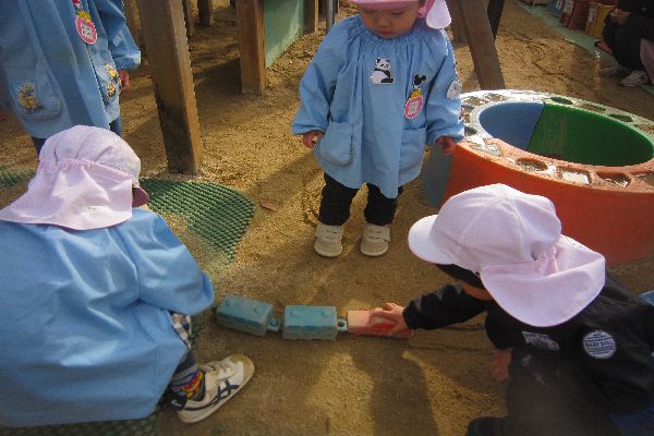 いちご組さん、今日も、ひよこ組さんと一緒に遊びました。少しずつ寒くなってきましたが、みんな元気いっぱいです!