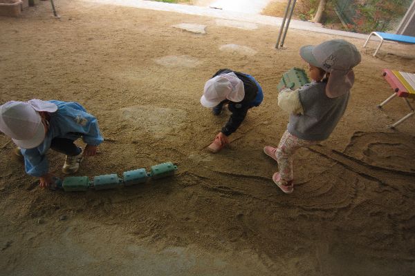電車で、線路を作って遊びました!どんどん長くしていきますよ!
