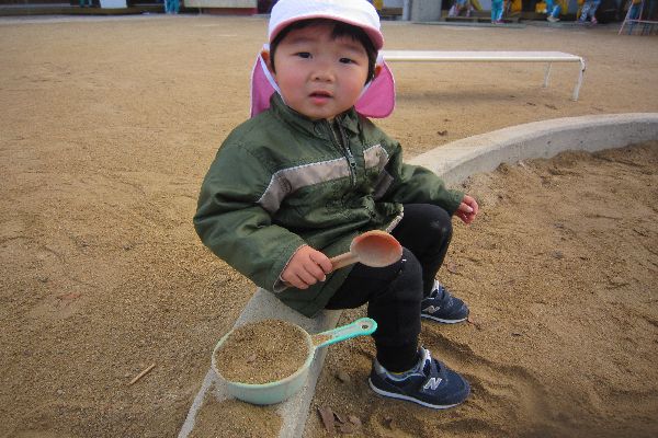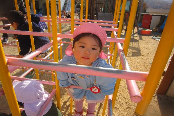 いちご組さん、今日も、外でひよこ組さんと一緒に楽しく遊びました!