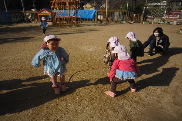 ひよこ組さんが、なわとびをしていると、「やってみる!」と、チャレンジ!