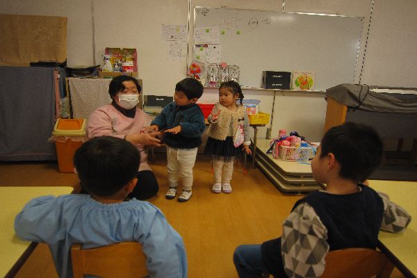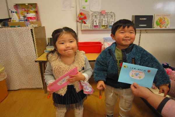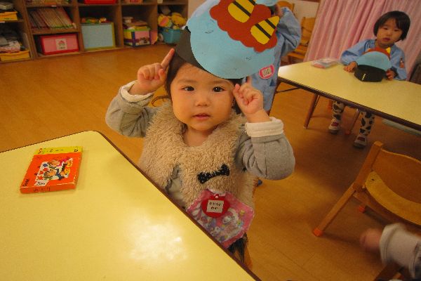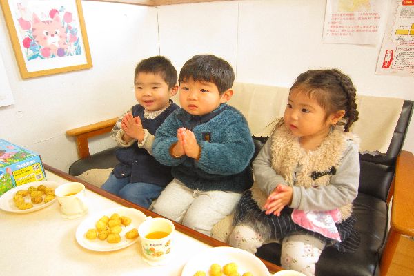 1月に3歳になったお友達の誕生会もしました。ひよこ組さんも一緒にお祝いしてくれました。うれしかったね!