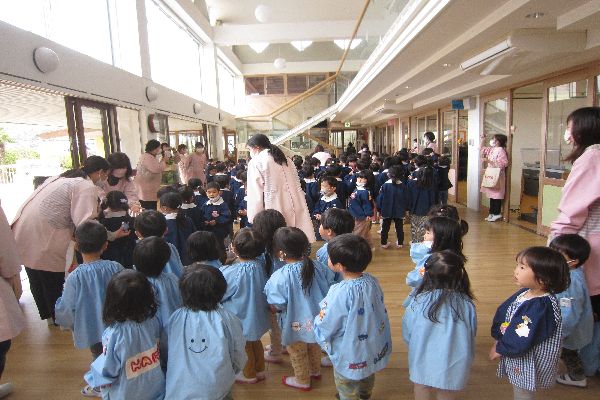 幼稚園のみんなでホールに集まってお別れ式をしました。