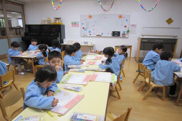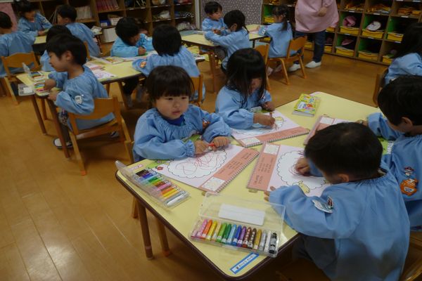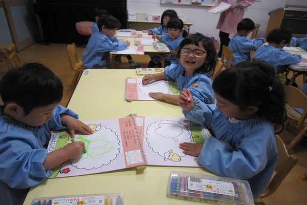 2023/04/14 年少組 お道具のお話 クレヨン遊び(羊)