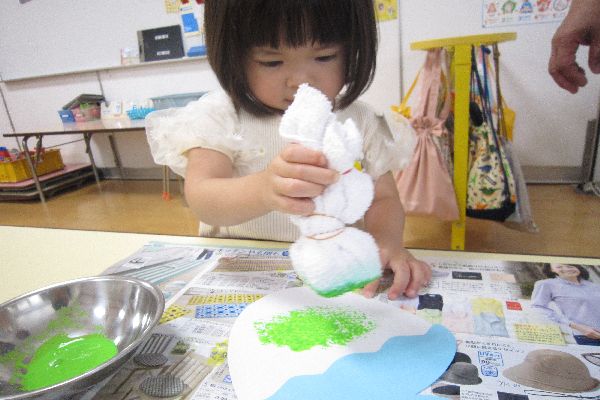 絵の具スタンプでかき氷を作りました。