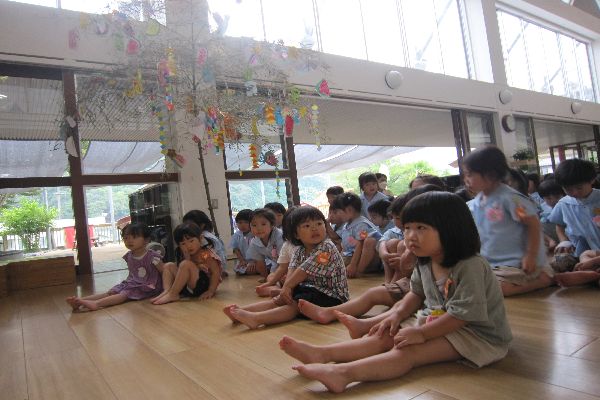 今日はホールに集まって、七夕まつりがありました!