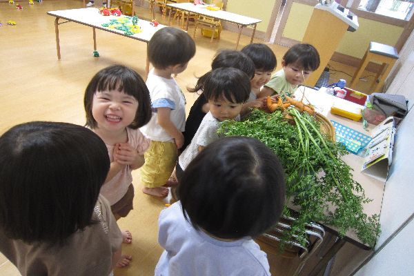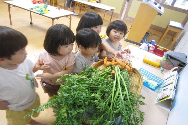 幼稚園の畑の人参を収穫しました。