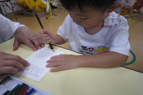 ハガキにお手紙を描きました。