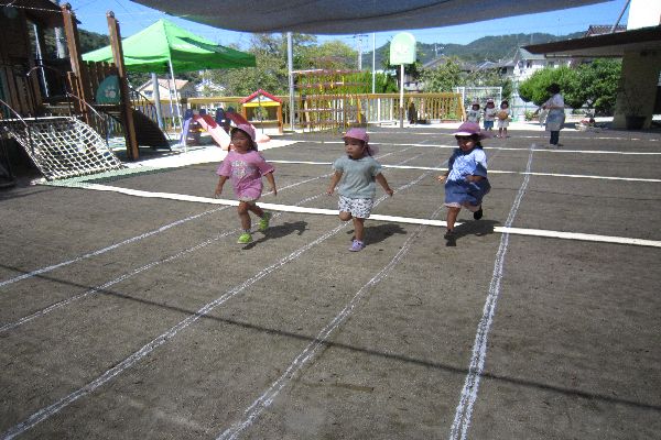 かけっこでは、「1番になりたい!」と言っている子や、「かけっこ楽しみ~」と言う声も聞こえてきました。ディズニー体操や入場行進も元気いっぱい取り組んでいます。