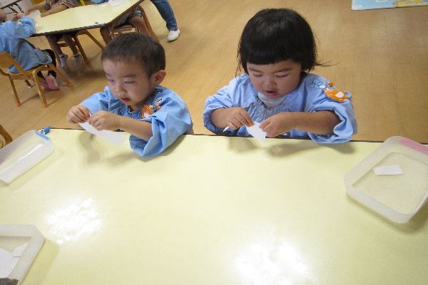 白い紙をビリビリ破いて・・・