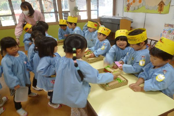 12月の月刊絵本を読みました。寒くなってきたことや、みんなが冬休みの間に色んな行事があることを知ることができました♪行事で食べるおせちなど…とっても美味しそうだったね!