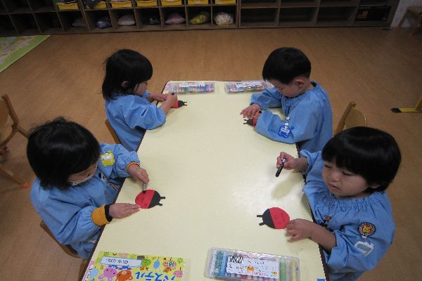 てんとう虫に模様を描きました!