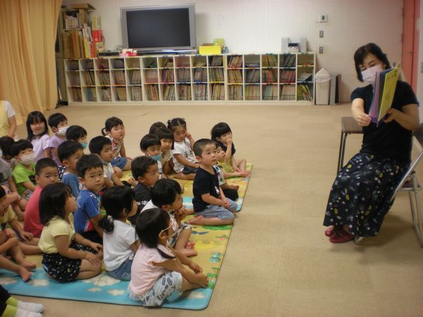 毎月1回、お話し会の先生が来てくださって、絵本を読み聞かせてくださいます。