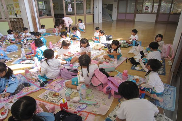 楽しみにしていた、遠足がありました。公園でどんぐりを拾ったり、滑り台、ブランコでたくさん遊びました。その後、幼稚園に戻ってひよこ組・いちご組さんと一緒にお弁当を食べました。
