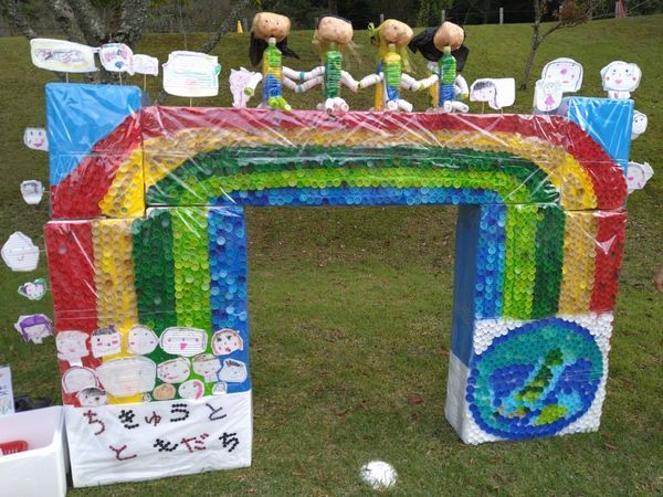 ペットボトルキャップアートで作ったかかしを搬入してきました!