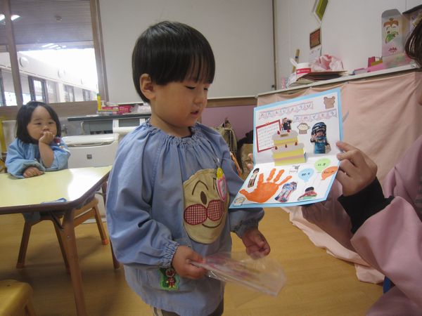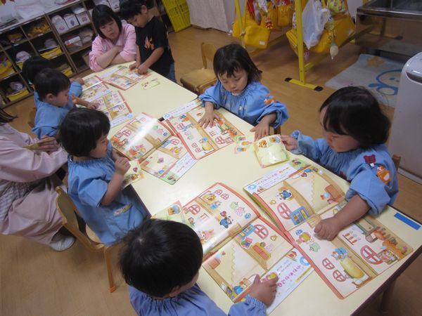 月刊絵本を読みました!みんなでシールをはって楽しみました。