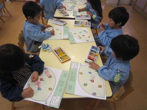 いろんな色で、いもむしの体を描き、カラフルでかわいいいもむしに変身しました!
