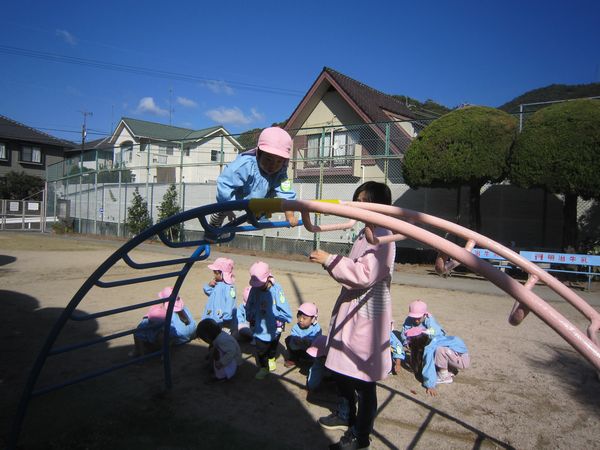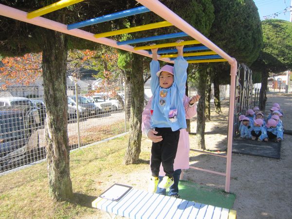 平均台やけんけん、太鼓橋、けんすいといろんな種目を頑張りました。