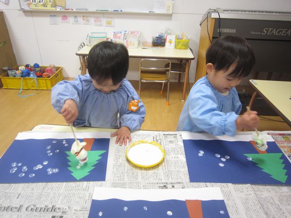 少しずつ寒くなってきて、冬の季節がやってくるのでみんなで雪を降らしました!