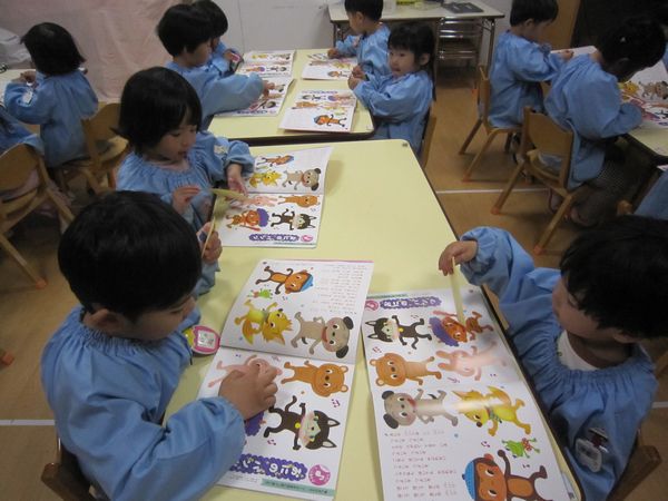 月刊絵本を読みました!お話をみてみんなでシールを貼りました。