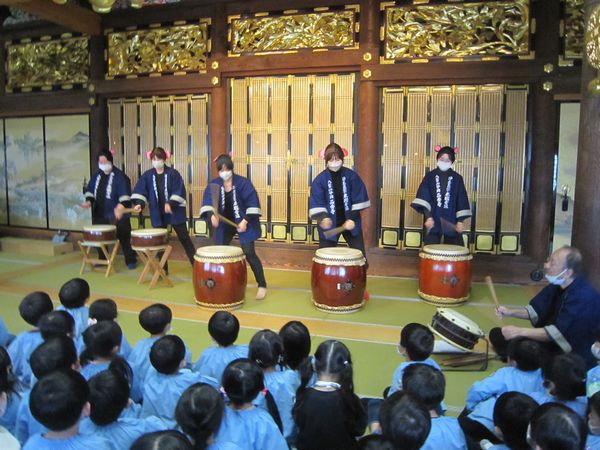 品秀寺に歩いてあがり、先生達から太鼓の演奏のプレゼントがありました!