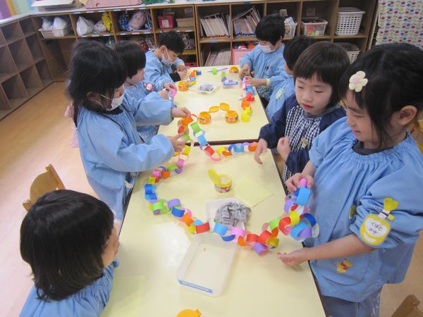 たてわりクラスのお友達と一緒にわつなぎを作りました♪
