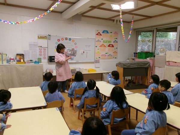 保育室では紙芝居をみて話を聞きました。