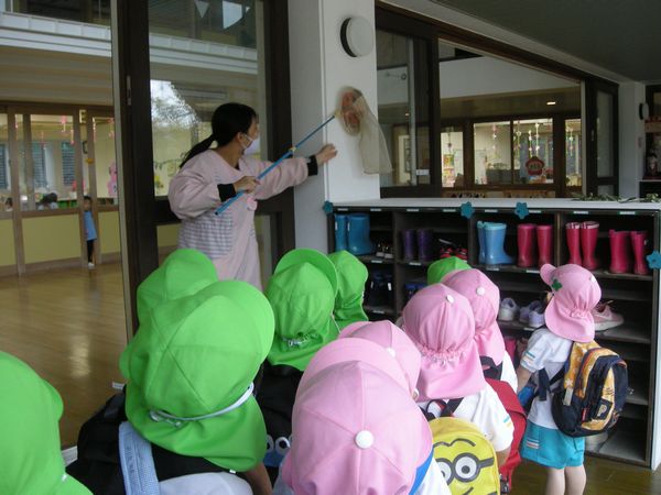 幼稚園に隠れている虫を仲良しクラスのゆり組さんのお友達と一緒に探しました!!