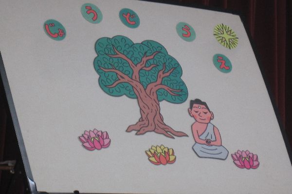 成道会のお話のパネルシアターを見ました。キラキラした目で