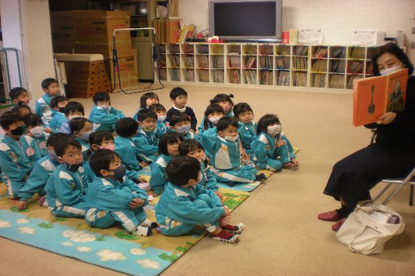 お話会では、「おもちのきもち」「しんせつなともだち」「おばあさんのスプーン」「てぶくろ」4冊のお話を聞かせてくださいました。