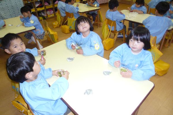 1年間いっしょに過ごしてきたクラスのお友達と、お別れ会をしました。クラスで、ゲームをしたり、一緒にゼリーを食べて楽しく過ごしました!年中組になっても、ずっとともだちだよ!