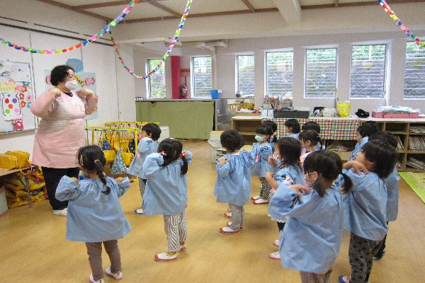 みんなで、ディズニー体操をしました!「ヘイ!ミッキー!レッツゴー!」とかけ声をかけて、みんなたのしそうに体操をしました!また、やってみようね!