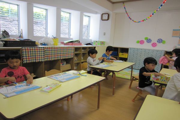 今日は、クレヨン遊びをみんなでしました。梅雨の季節について知り、みんなで雨を描いてみました。「ざーざーざーってふってるよ!」「かたつむりさんがよろこんでるよ!」と、みんな喜んで取り組みました。