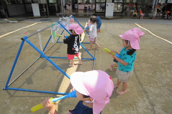今日も、いい天気!水遊びには、もってこいの日です!水でっぽうも上手になってきました。楽しかったね!