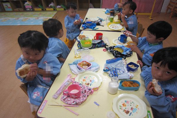 「パンおいし~!」とにっこり笑顔で食べました。