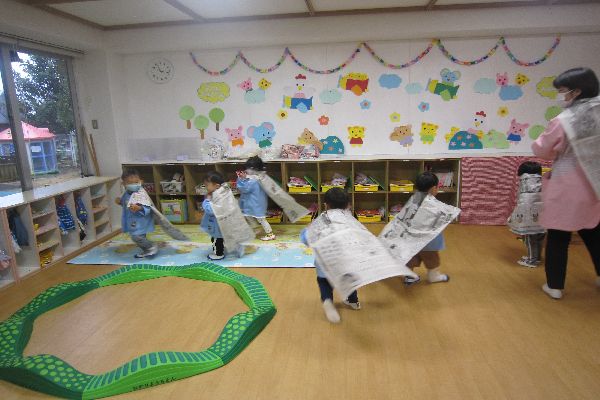 よーし!今日は新聞紙であそぼ~!