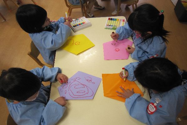 色んな模様を描いたり、お顔・ハート・おひさま…それぞれ好きな絵を描いて、とっても可愛くなりました♡