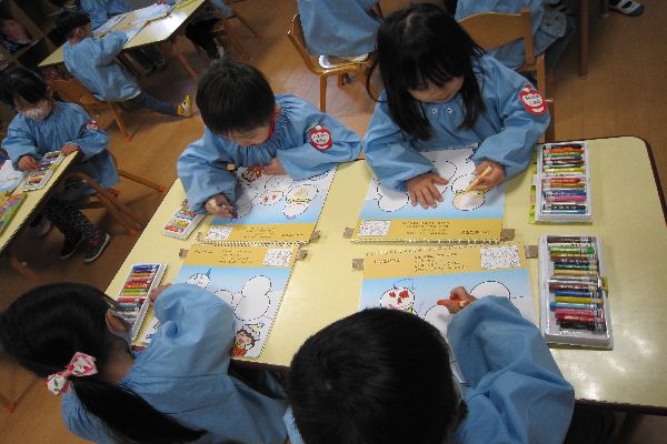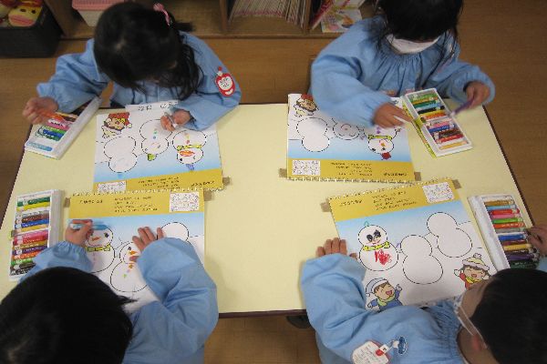 2022/01/14 クレヨン遊び「ゆきだるま」をしたよ!